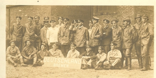 A DEUTSCHLAND legénysége Baltimore-ban. A középen tisztelgő alak Paul König, a tengeralattjáró parancsnoka.