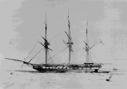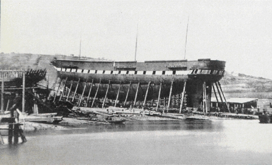 A Novara a trieszti építősólyán 1861-ben az átépítése során. (Aichelburg 1976)